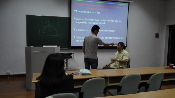 下午,王晋教授来到体育学系所在的西二教学楼,为系里的老师和硕士研究生们做了以“用科学方法建立中国校园足球体系”为主题的讲座。王晋教授由美国奥委会的运作引出美国现有运动员队伍培养中的科学性,指出美国运动员培养中的体育和学业并重,点明构建中国校园足球体系的重点就是要把握好学业和体育的关系。王晋教授进一步介绍了美国的体育体系,从做爱影片 体育到体育俱乐部,再到奥运竞训中心,层层递进之中,都与学业和体育全面发展紧紧相连。王晋教授还结合自身与足球的渊源,结合美国体育发展的经验,解释了建立校园足球体系的重要性及其作用,提出了自己对于建立和完善中国校园足球体系的建议:从要重视学生德智体全面发展,到实行基于学生学业成绩和足球运动成绩双重评价的教练员雇佣体系,再到作为发展校园足球激励机制的国际交流项目,激励团队合作,推进足球的开放式训练,做好足球教练水平等级认定,等等。在分析足球体系之余,王晋教授还从足球运动本身的角度,分析了巅峰足球表现的五大因素、世界级足球比赛的主要特点以及足球技能的具体特征,与在场师生分享了自己几十年研究的宝贵心得。讲座最后,王晋教授与在场的师生进行了问答交流,并合影留念。