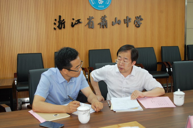 领导和专家的到来表示诚挚欢迎,同时也指出萧山中学正面临着如何迎接融入大杭州的挑战,真诚地希望能借助“研究基地”这个平台使名校更“名”,尖子更“尖” 。