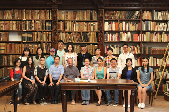 8月5日上午,夏令营师生在米兰昂布罗修图书馆研讨