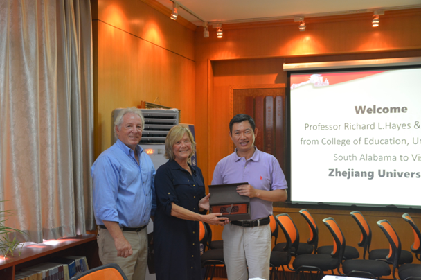 对Richard L.Hayes教授一行的来访表示热烈欢迎。周丽君教授对体育学系的历史沿革、专业设置、课程体系、人才培养及国际交流合作进行了详细介绍。Richard L.Hayes教授对体育学系的当前建设情况以及所取得的成绩深表赞赏,并介绍了南阿拉巴马大学在健康体育教育和休闲研究等方面的学科建设现状。在接下来的洽谈中,双方就可达成合作的领域深入交换意见,并提出一系列创新性设想,以实现覆盖教师和学生的各个层面的交流合作。会谈的最后,双方都表达了对正式达成合作的强烈期待,希望后期进一步商讨和确定合作细节。 会谈结束后,双方互赠纪念品并合影留念。