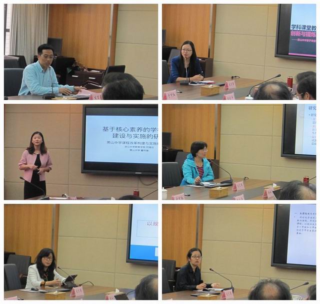 课程建设与实施的研究”、“萧山中学智慧课堂的开发与研究”、“以规划谋发展以学习修内涵以活动创品质——萧山中学教师专业发展培育工作的实践研究”、“学生成长与生涯规划指导的研究”等六个研究课题向评审专家进行了现场汇报,着重从项目背景、研究目标与研究内容、研究进程、预期成果等方面论述了课题研究计划。论证专家认真听取了项目负责人的汇报,对各项目组的选题和准备工作予以了充分的肯定,并从研究工具与方法、研究目标指向、研究结果如何有效指导教学实践、新的挑战和机遇下如何做好传承与创新等方面提出了具体并有针对性的修改意见和建议。