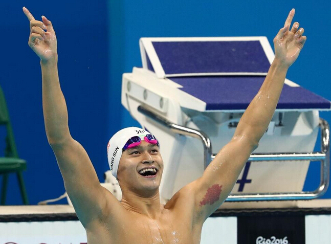 体育学系2014届校友孙杨以1分44秒65的成绩摘得冠军,为中国游泳队夺得本届奥运会首金。