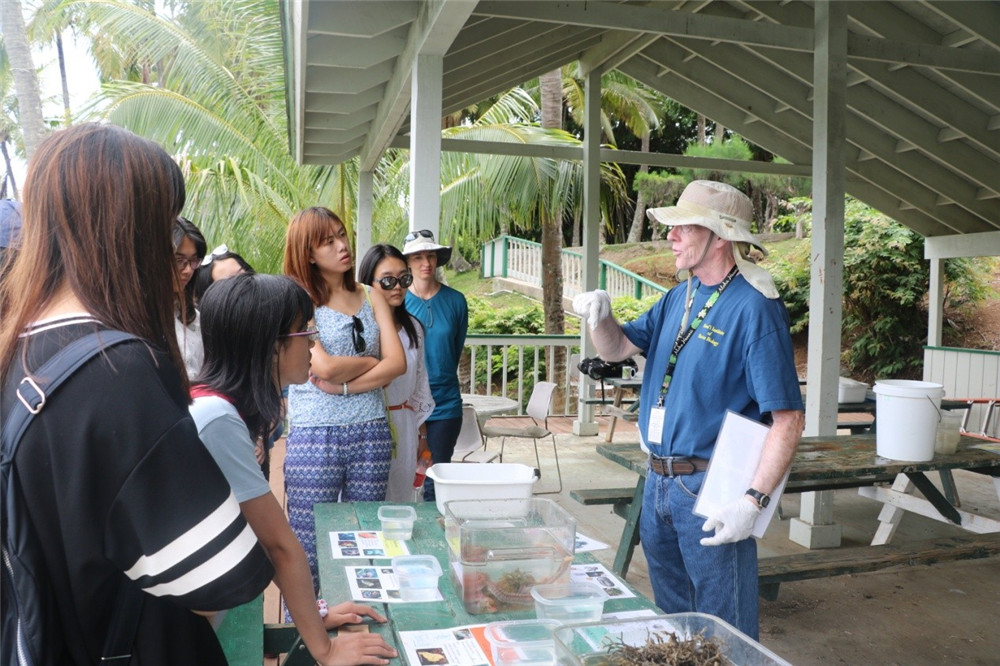 为进一步加深对海洋生物与自然和谐共生的认识,同学们考察了夏威夷大学马诺阿分校位于Coconut海岛上的海洋生物研究中心基地,在教授们详细介绍海洋浮游生物的种类和生存环境后,同学们亲自动手完成一些浮游生物分类和通过显微镜观察浮游生物标本,体会到“从做中学”的乐趣和意义。更让夏令营同学们敬佩的是,研究中心的教授们对海洋生物的情感和敬业精神。启发同学们对干事创业、尊重生物、热爱自然的心灵感悟。