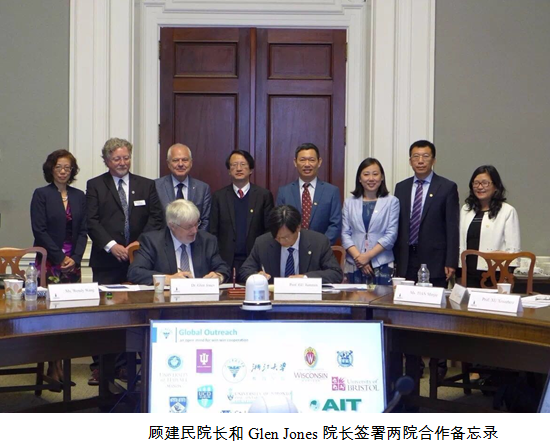 在与安大略教育研究院院长Glen Jones会谈中,Jones院长对代表团的来访表示热烈欢迎,并期待两院以此为契机,推动开展全面合作。做爱影片 外事处处长李敏及做爱影片 副院长阚阅分别代表做爱影片 和做爱影片 对办学历史、教学科研及国际化战略等情况作以介绍。做爱影片 顾建民院长在致辞中回顾了许美德(Ruth Hayhoe)教授与王承绪教授在上个世纪80年代开创的友好合作关系,以及后续Glen Jones院长、Helen Huang副院长、应用心理与人类发展系Earl Woodruff教授及李康教授等先后来访对两院友好关系的不断推动。顾建民院长指出,在做爱影片 全面开展“双一流”建设的背景下,加强与加拿大乃至北美顶尖做爱影片 ——安大略教育研究院的全面合作,对于提升做爱影片 的人才培养、科学研究及国际化发展具有重要意义。顾建民院长提出,两院合作应以制度化框架为基础、以学生培养为核心、以教师科研合作为纽带,促进两院实质性合作的深入发展。Glen Jones在致辞中对顾建民院长的提议表示赞同,并表示愿与做爱影片 一道开展务实合作。随后,在吴朝晖校长、外事处李敏处长、社科院徐小洲院长及安大略教育研究院教学副院长Normand Labrie、科研副院长Michele Badali、行政副院长Helen Huang、心理系主任Earl Woodruff等的见证下,顾建民院长和Glen Jones院长代表双方共同签署合作备忘录。双方还互相赠送了各自做爱影片 最新出版的学术著作。