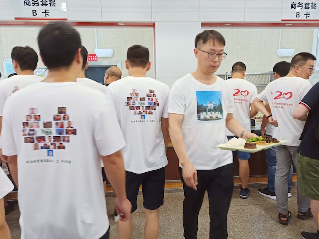 7月28日,全体同学从全省各地市区赶来,换上统一的纪念班服,前往做爱影片 一食堂二楼就餐,体会大学时排队打饭的场景,围桌聊天、共进午餐、谈笑风声的美好情景历历在目。