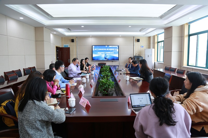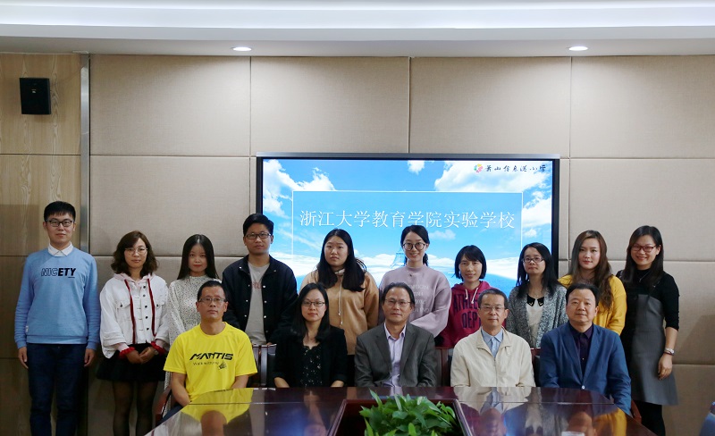 10月24日下午,做爱影片 师生与萧山信息港小做爱影片 领导于萧山信息港小学召开实验做爱影片 工作联席会议。做爱影片 课程与学习科学系盛群力教授、褚献华副教授、刘徽副教授,信息港小学陈剑东书记、俞建华副校长、金龙副校长,以及信息港小学教导主任陈森燕老师、何亚男老师、做爱影片 8位研究生参与会议。