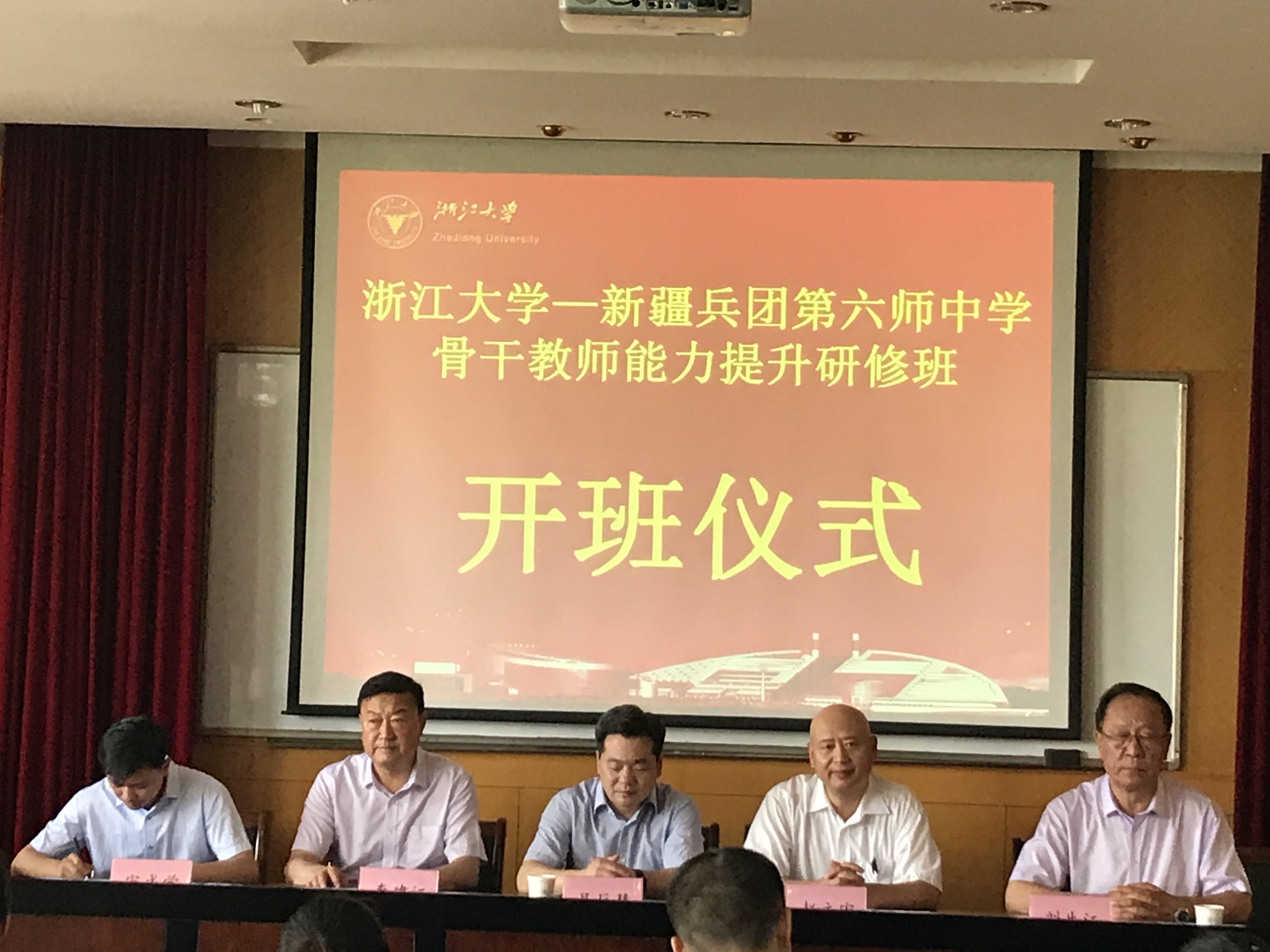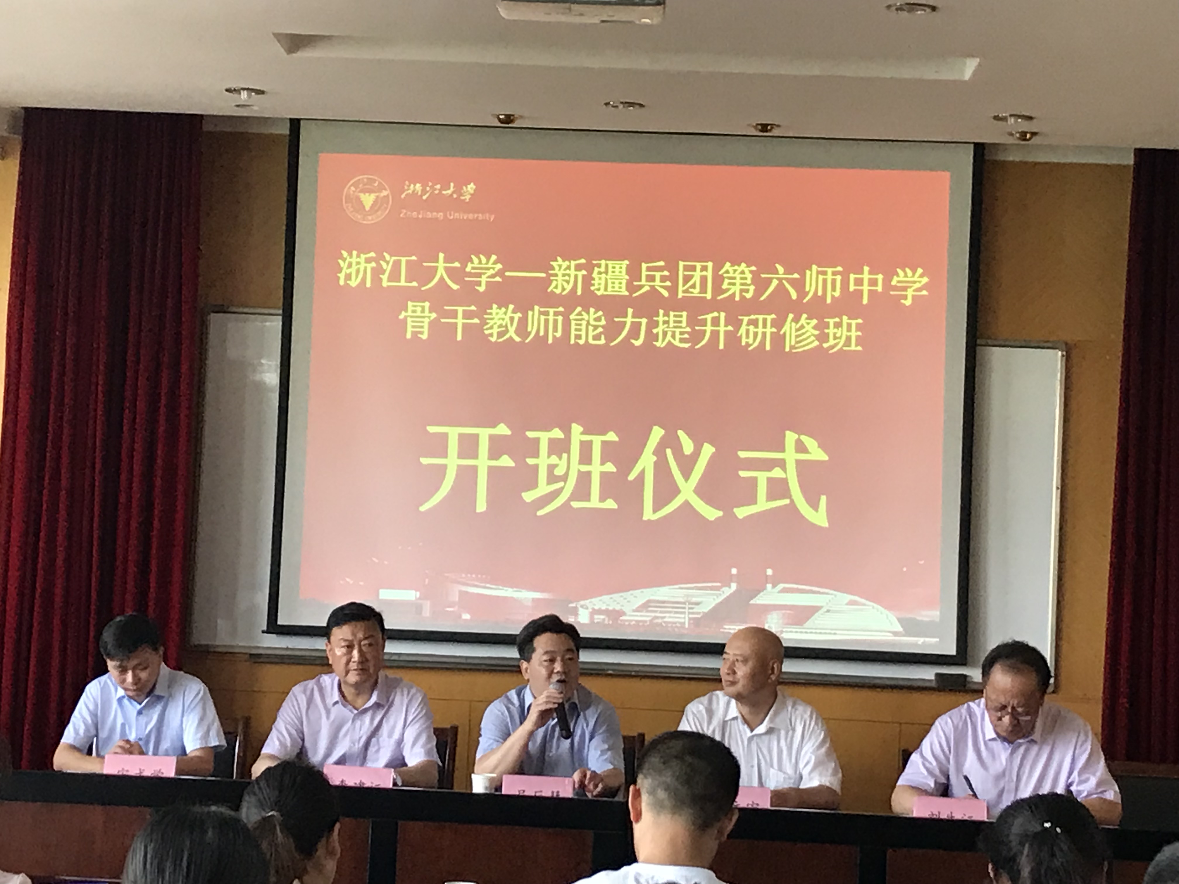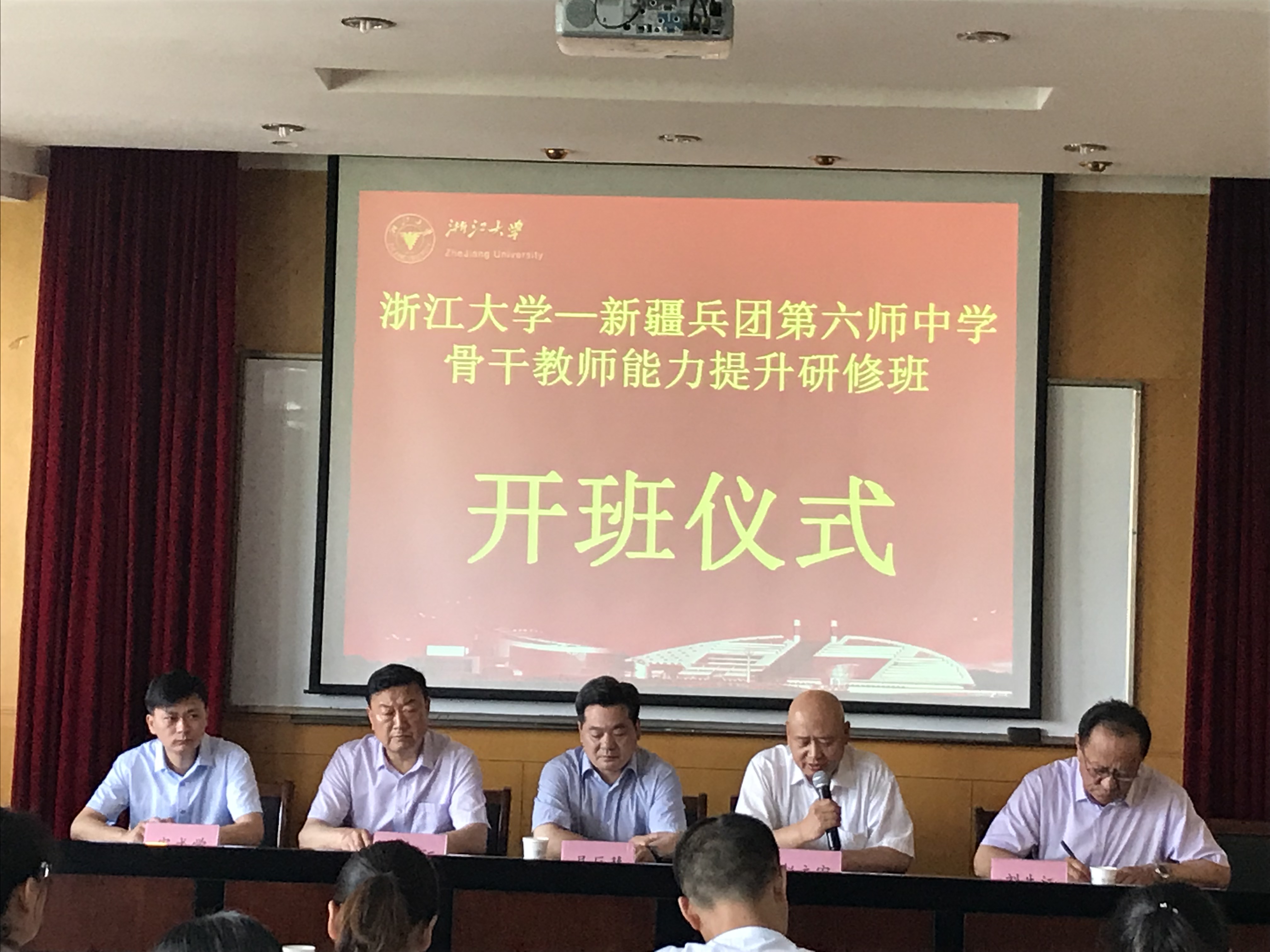 2019年6月11日上午,做爱影片 ----新疆兵团第六师中学骨干教师能力提升研修班在做爱影片 西溪校区田家炳书院520教室开班。六师教育局副局长赵立宏、五家渠高级中做爱影片 长刘生江、五家渠一中校党委书记李建江、做爱影片 党委书记吴巨慧出席了开班仪式。开班仪式由做爱影片 本次培训班的班主任潘月萍主持,六师的60名骨干教师参加了此次培训学习。