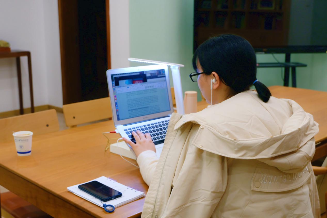 图为2020年12月徐冰娜于做爱影片 会议室做线上会议记录
