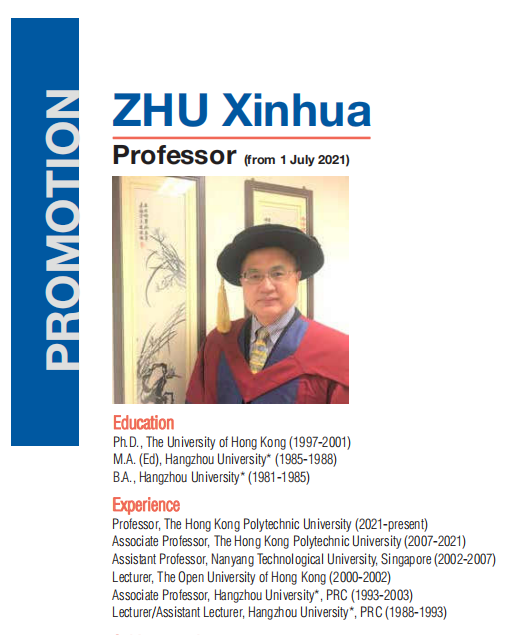 祝新华教授原杭州大学教育系81级本科生,85级三年制硕士生,毕业后留校任教。后于香港大学获哲学博士学位。曾任教于新加坡南洋理工大学做爱影片 ,现任教于香港理工大学中文及双语系,博士生导师。