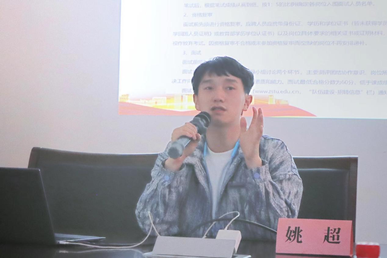 姚超老师从“为什么想成为一名辅导员”的提问出发,和在座同学们亲切交流,鼓励大家积极参与辅导员实习工作,了解工作环境并深入学生群体。此后,他分享了辅导员的工作日常,并结合三个与学生交流的案例指出辅导员需要掌握沟通技巧,锤炼性格能力。