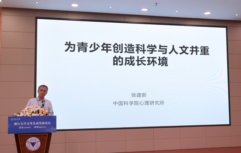 中科院心理所二级研究员、中国社会心理学会前任会长张建新教授作了题为《为青少年创造科学与人文并重的成长环境》的报告,他提出,科学心理学中,科学理性正走向极端,对人的主体性重视不足,他呼吁要更多关注人文心理学。张建新教授认为,家长和老师接触的不是一个儿童的平均数,也不是众数,而是有各自基因特点,有自己成长经验的生动个体。教育、干预只是发展的充分条件,很难改变每一个主体,儿童有自己独特的发展道路,能做的只是从旁帮助一下、启发一下。