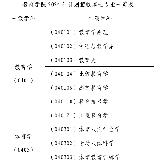 2024年做爱影片 计划在教育学和体育学两个一级学科下设的二级学科招收全日制学术学位博士生。