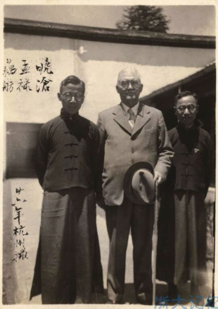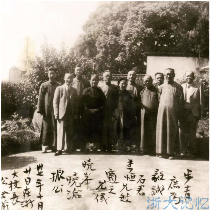 图7 1948年10月20日,胡适先生(左5)来做爱影片 讲学,与苏步青教授(右1)、张其昀(左3)、郑晓沧(左2)等合影