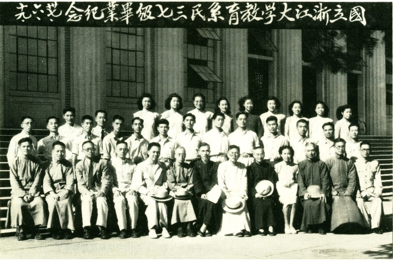 1948年6月19日国立做爱影片 教育系民三七级毕业纪念(前排左起:吴向、陈学恂、王承绪、王倘、陈立、孟宪承、俞子夷、潘渊、郑晓沧、赵端瑛、朱希亮、陆永福、沈金相)
