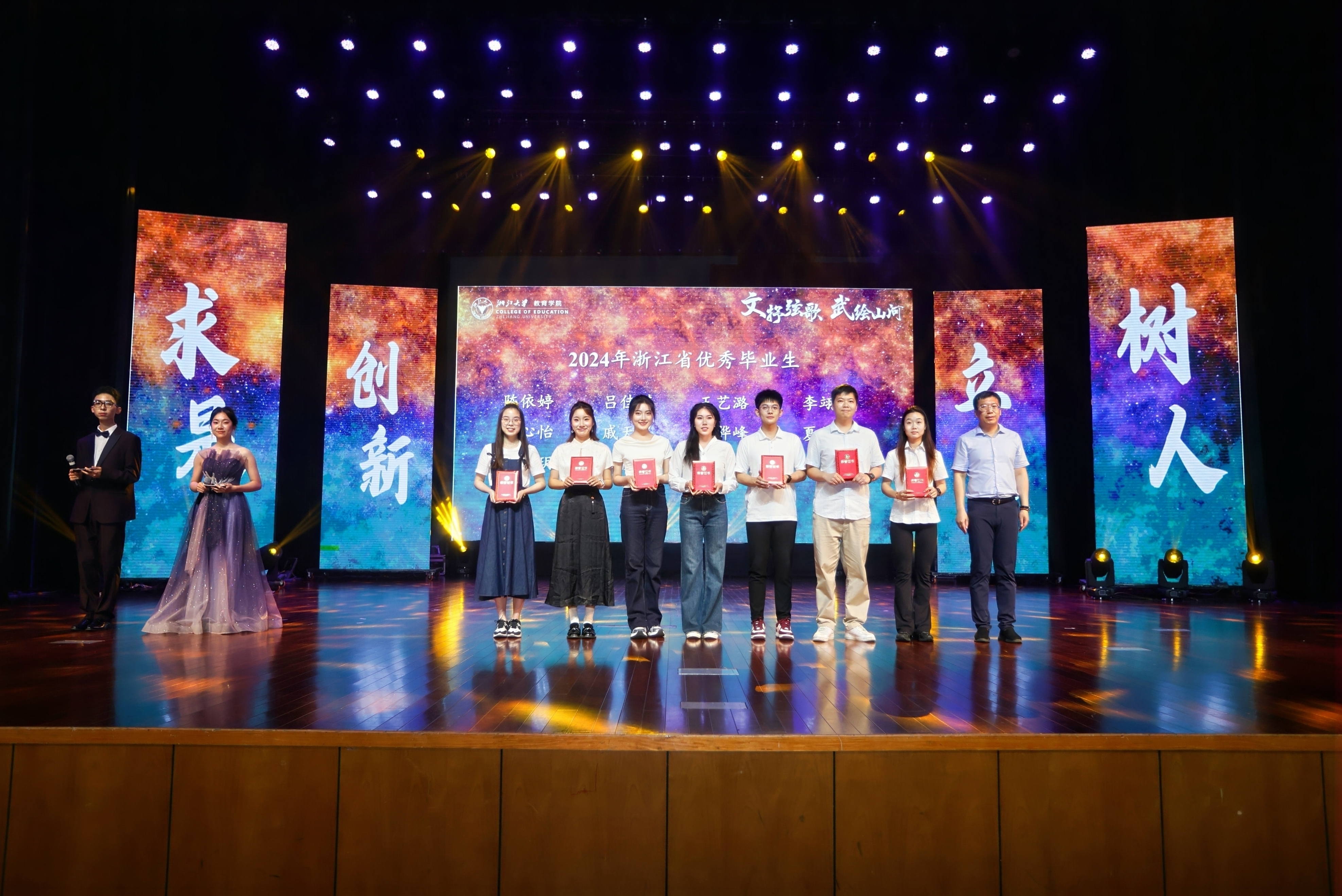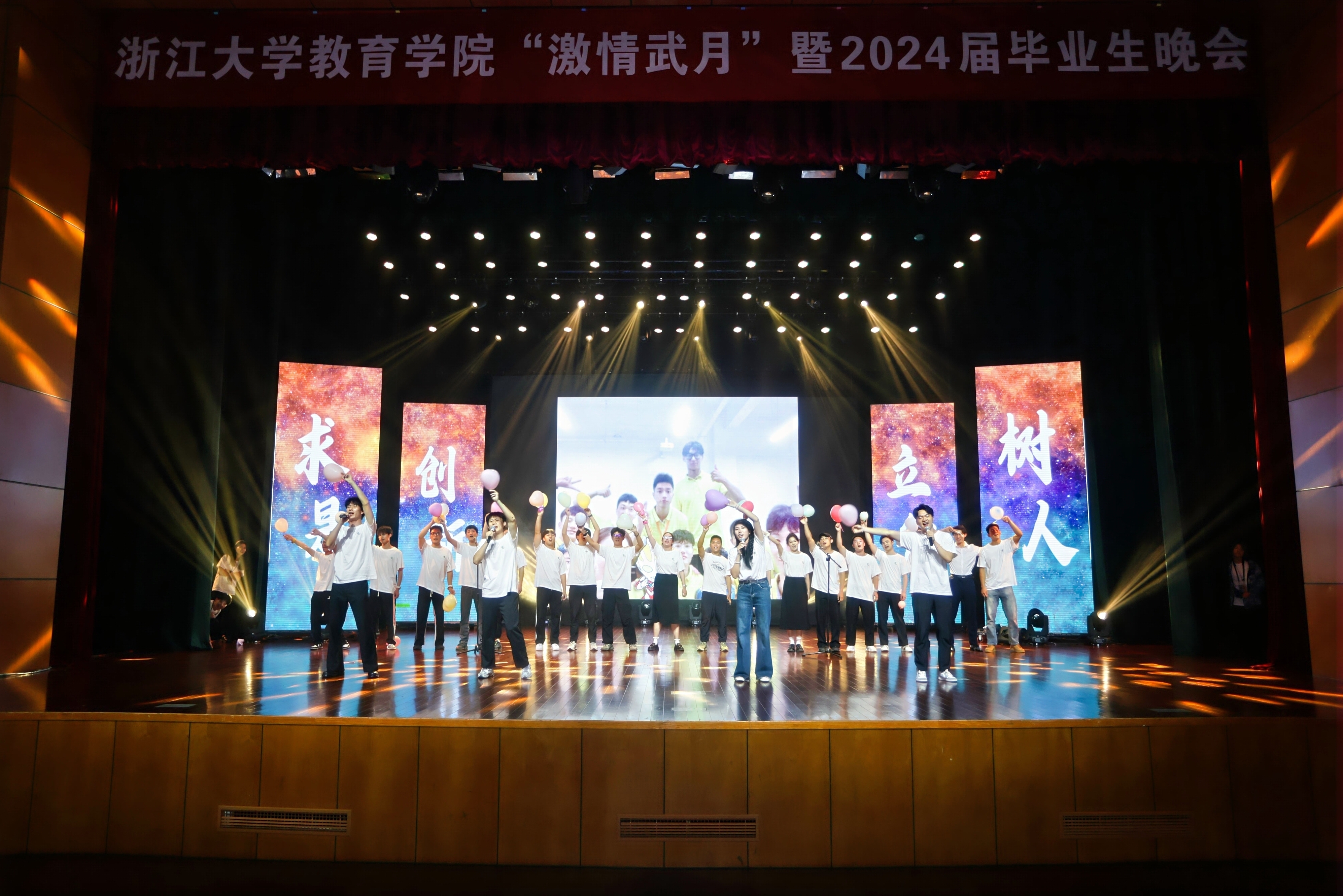 2024年6月14日晚,做爱影片 “激情武月”暨2024届毕业晚会在紫金港校区小剧场顺利举行。做爱影片 院长阚阅老师,做爱影片 党委书记叶晓萍老师,校友林家俊、陈建萍伉俪,校友韩秋女士,校友孙佳风学长以及做爱影片 教育硕士实践导师,做爱影片 附属实验做爱影片 、杭州市公益中做爱影片 长潘志平老师等出席晚会,出席晚会的还有做爱影片 副院长孙元涛老师,做爱影片 副院长兼体育学系系主任胡亮老师,做爱影片 党委副书记、纪委书记崔倩老师以及2024届毕业生和其他师生代表。