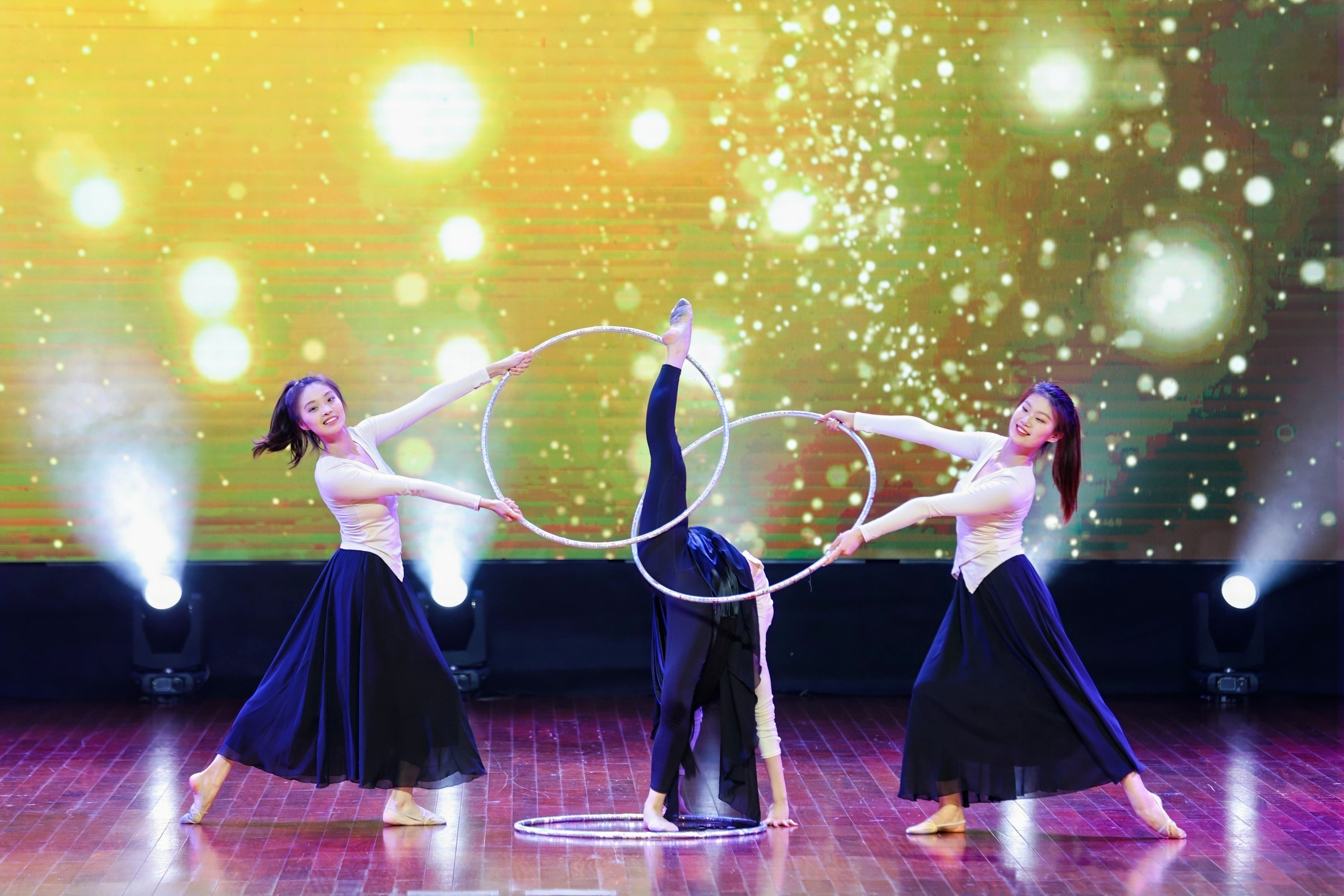 《瓷韵人间》艺术体操表演,王丹妍、张钰璇、耿旭一等同学将青花瓷之美融入舞步,传统与现代的交融,令人赞叹不已。