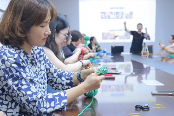在培训师的详细介绍下,老师们纷纷动手,将一片片普通布料和一块块棉絮棉絮,经过耐心制作,变成了一把把既实用又充满爱意的养生锤。
