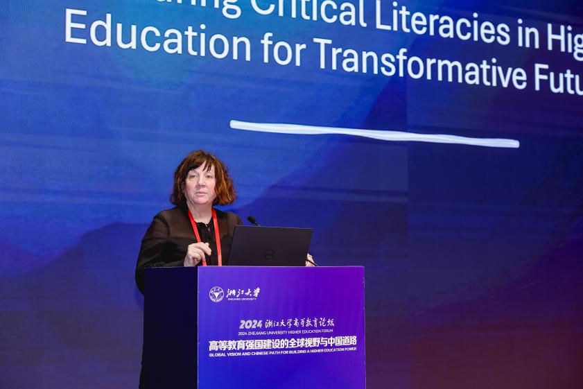 Jo-Anne Dillabough教授作题为“Nurturing Critical Literacies in Higher Education for Transformative Futures”的报告。报告主要围绕“重构高等教育中的风险和公共利益”的主题展开。她指出,来自外部环境的经济压力正在改变全球高等教育的基本特征,对高等教育支持公共利益承诺、应对全球跨国复杂性、多样性,以及消解社会冲突等提出了新要求。为应对未来的挑战,她认为我们应借助数字技术的力量变革知识生产方式,缩小大学与公众想象的差距。