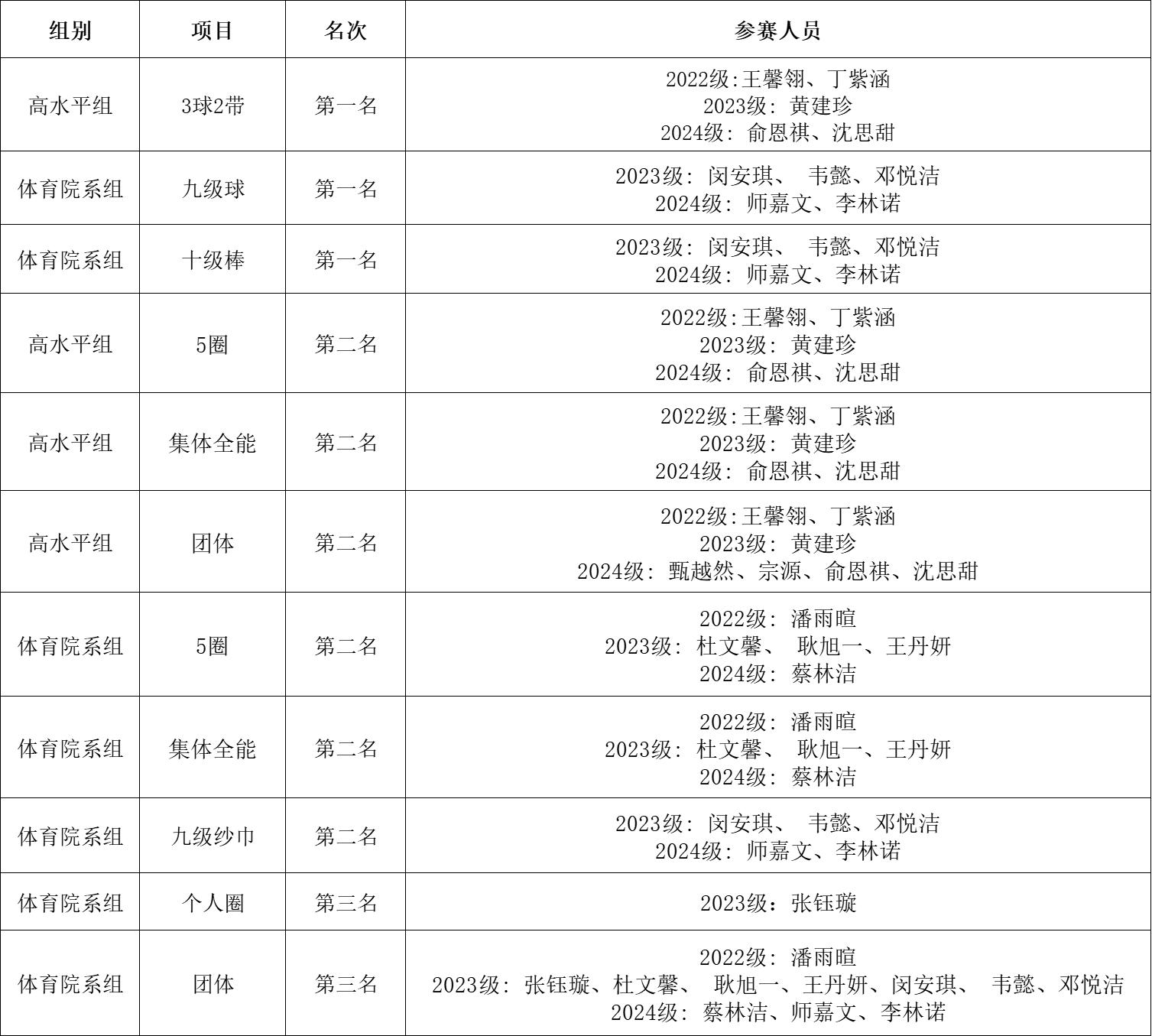 做爱影片 艺术体操代表队由做爱影片 体育学系运动训练专业18名同学组成,邱亚君老师担任领队,张玲老师担任主教练,王淇奥同学担任助教,分别参加了高水平组和体育院系组两个组别的个人与集体比赛,最终获得3金6银2铜的优异成绩。