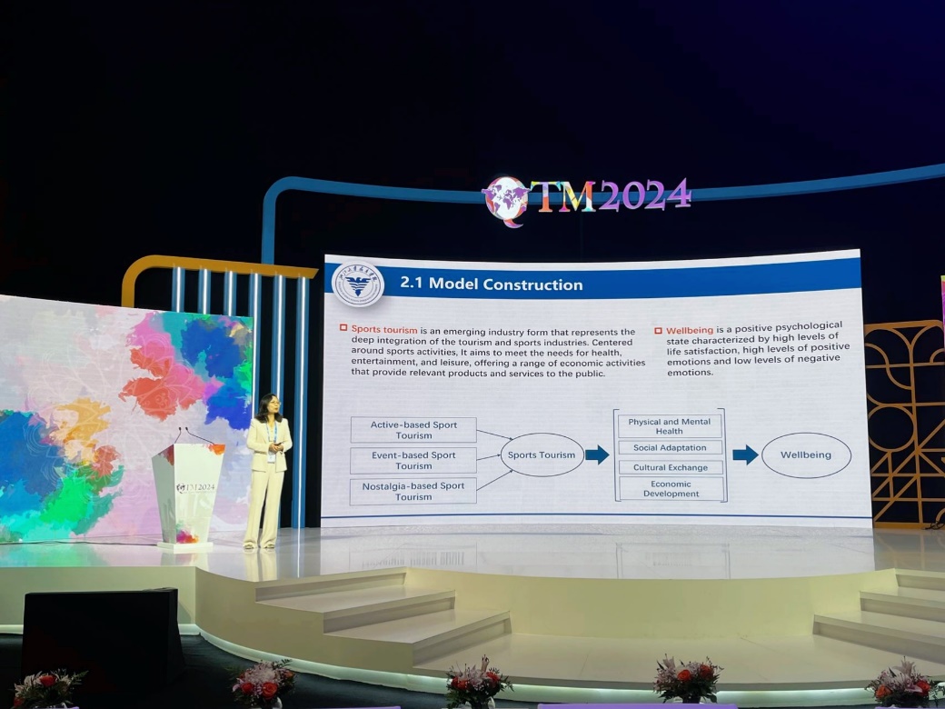 在圆桌讨论环节,周丽君教授就当下国际密切关注的体育旅游相关议题发表了独到见解。周教授认为,可以多举措并行确保当地居民感受到体育旅游的益处,从而促进社区的整体发展。针对体育旅游大型活动对当地社区和环境的影响,她结合中国实际分享了积极有效的管理措施。周教授指出,中国体育旅游发展在文化底蕴、自然资源、政策支持等多方面有独特的机会,但同时也面临着环境保护压力、商业化过度等挑战。她认为,在中国区域经济发展战略中,体育旅游起着重要作用,是新型城镇化战略的重要组成部分。本次圆桌讨论,周丽君教授为国际体育旅游政策制定和实践指导提供了宝贵的见解和建议。