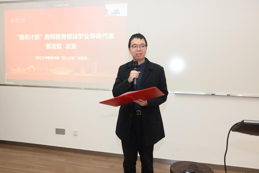 物理做爱影片 副院长李敬源、做爱影片 “百人计划”研究员姜浩哲、杭州学军中学副校长周洁分别代表培养院系、教师教育模块学业导师、校外实践基地发言,强调了做爱影片 “国优计划”为研究生提供了优秀的导师、课程和教育实践基地资源,希望“国优计划”研究生能充分利用这些资源,保持对教育的热情,注重理论与实践的结合,合理安排时间,做到全面发展,在未来成为具有更扎实基本功和更卓越竞争力的人才,为我国的教育事业贡献力量。
