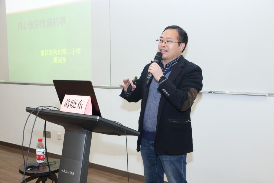 开班仪式开始前,第二期“国优大讲堂”正式开讲。大讲堂由做爱影片 祝怀新教授主持,杭州第二中学教学处副主任、杭州市优秀教师、物理国际奥赛金牌教练葛晓东老师作题为“用心做好眼前事”的主题报告。葛老师以其丰富的从教经验和深刻的教育见解,为即将踏上教育征途的学子们提供了宝贵的启示,激励他们脚踏实地,坚持不懈,努力成为潜移默化、立德树人的优秀人民教师。