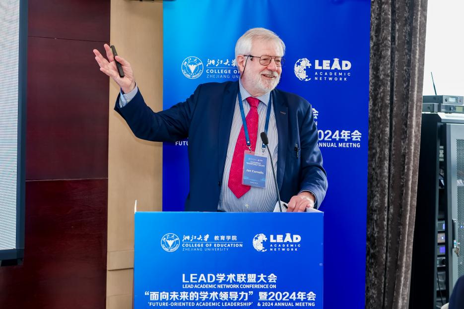 布鲁塞尔自由大学前副校长扬·科尔内利斯(Jan CORNELIS)教授在致辞中从大学治理和领导力的视角出发,强调了交互与合作的重要性。他指出,高等教育机构应为学生谋福利,使学生成为拥有跨文化能力的世界公民,同时也应保持充分的自主性。此外,未来教育需格外重视人工智能与教育结合的机遇与风险,正确认识人工智能的不同类型,拓展人工智能的应用领域。