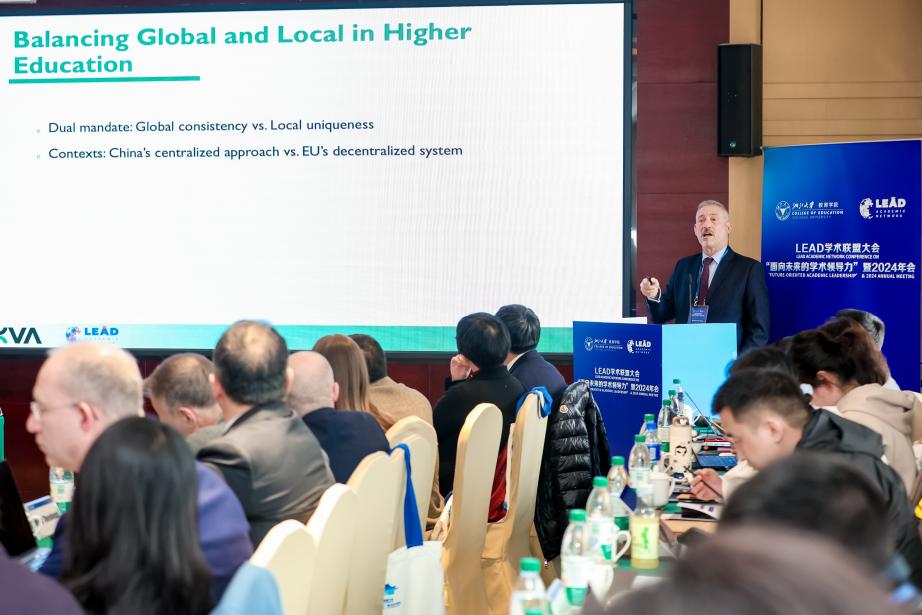 新里斯本大学副校长若昂·阿马罗·马托斯(Joao Amaro Matos)教授通过比较中欧文化与高等教育系统,对全球一致与本土特色的平衡进行探讨,并指出在全球化浪潮下,中欧高校正面临着一场独特的挑战:既要通过数字科技创新、国际人才流动和科研合作提升全球竞争力,又要在各自的制度框架下维护文化传统与区域特色,如何在保持政策执行效率与制度自主性的同时,避免同质化倾向,实现真正的“全球一致性与本土独特性”的和谐统一。