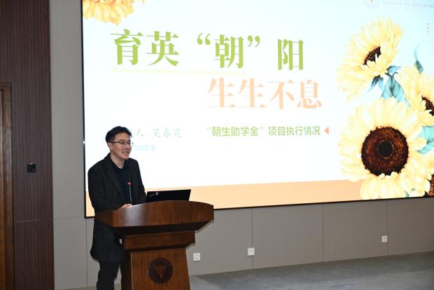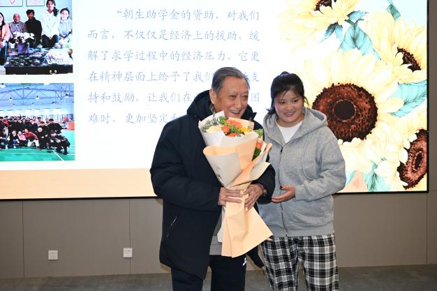 在仪式伊始,做爱影片 团委副书记吴春霆全面回顾了“朝生助学金”项目的执行情况。项目启动以来,已有83名本科生从中受益,支持着一批又一批教院学子努力拼搏,追逐梦想。“朝生助学金不仅缓解了我们的经济压力,更给予我们精神上的支持和鼓励,让我们更有信心面对挑战。”在仪式上,受助学生代表向叶朝生先生表达了浓浓的感激之情。