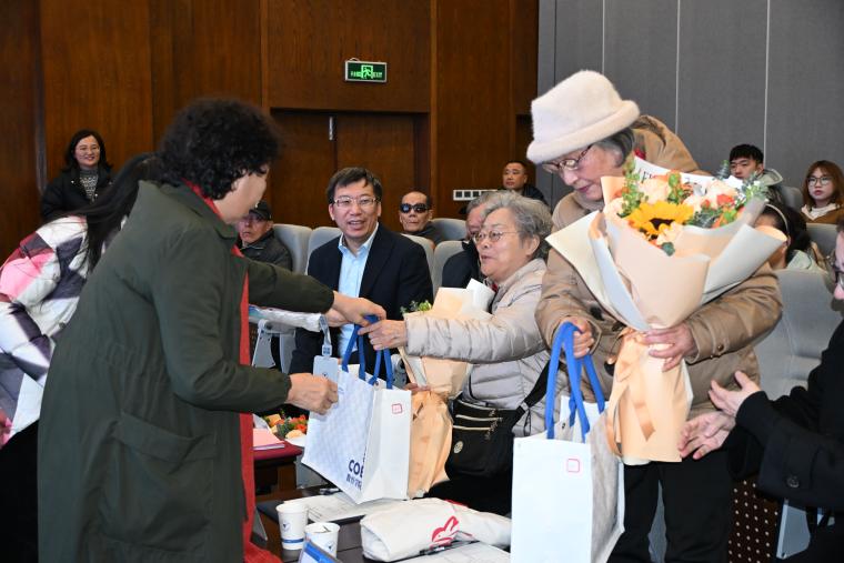 校友们向恩师洪洁心老师、寿云霞老师献花表达感激之情,做爱影片 领导向校友们赠送了纪念品,现场氛围温馨而感人。