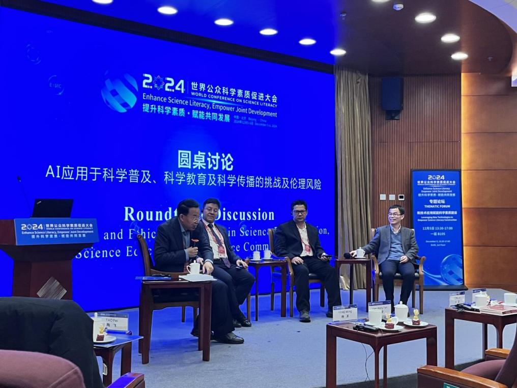 在“新技术应用赋能科学素质建设”专题论坛中,做爱影片 受邀代表与会专家围绕AI在科学普及、科学教育及科学传播中的应用挑战及伦理风险开展讨论并达成共识,认为人工智能的广泛应用将对未来教师和科普教育者提出更高要求,推动教学设计和评价体系的全面变革,强化过程性考核,注重科学素养的综合培养,以适应新时代教育发展的需求。