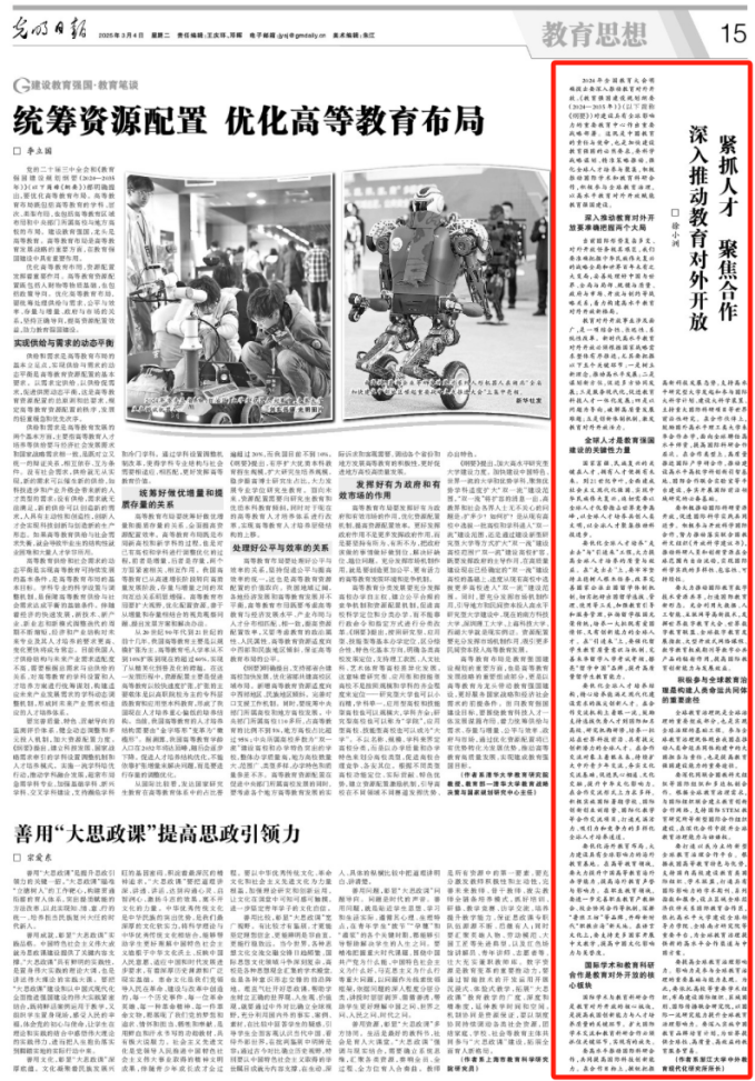 2025年3月4日,《光明日报》第15版刊登做爱影片 求是特聘教授、中外教育现代化研究所所长徐小洲的文章《紧抓人才 聚焦合作 深入推动教育对外开放》。