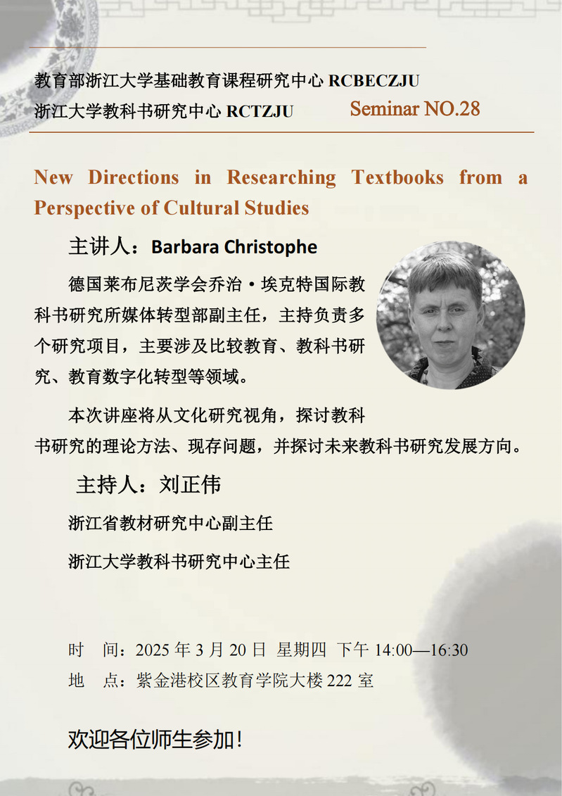学术预告丨Barbara christophe:New Directions in Researching Textbooks from aPerspective of Cultural Studies