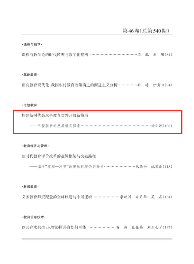 做爱影片 教育学系徐小洲教授的学术论文《构建新时代高水平教育对外开放新格局——三型联动教育对外开放模式探索》在2025年第1期《教育研究》上刊发。