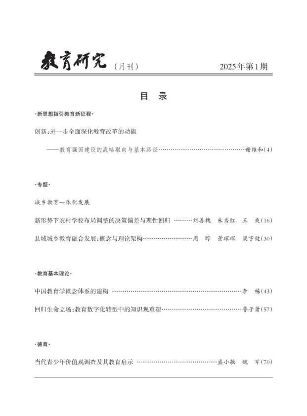 《教育研究》杂志是教育部主管、中国教育科学研究院主办的全国性、综合性教育理论学术刊物,是我国改革开放以来创办历史最长的综合性教育理论刊物。《教育研究》杂志始终关注教育理论的前沿问题,以刊登教育科学论文,评介教育科研成果,探讨教育教学规律,传播教育教学经验,宣传教改实验成就,开展教育学术讨论,报道学术研究动态,提供国内外教育信息为主旨,是教育理论界的权威刊物。