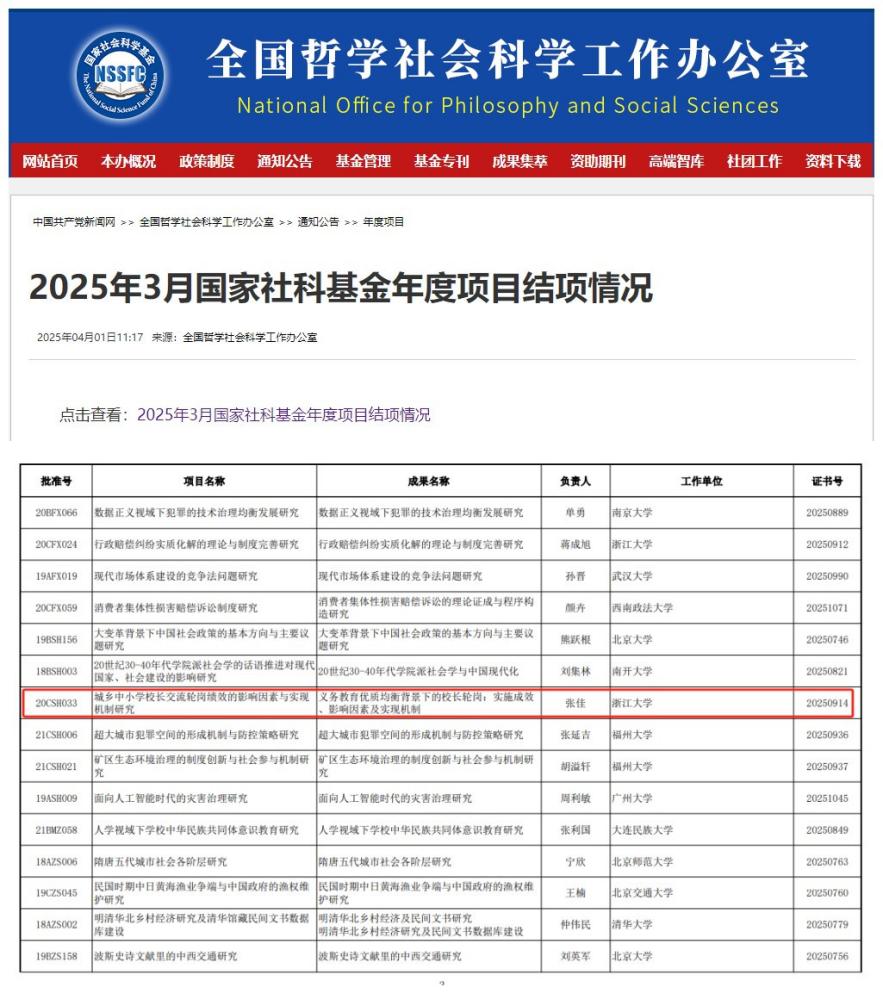 近日,全国哲学社会科学工作办公室公布了2025年国家社科基金年度项目结项情况。