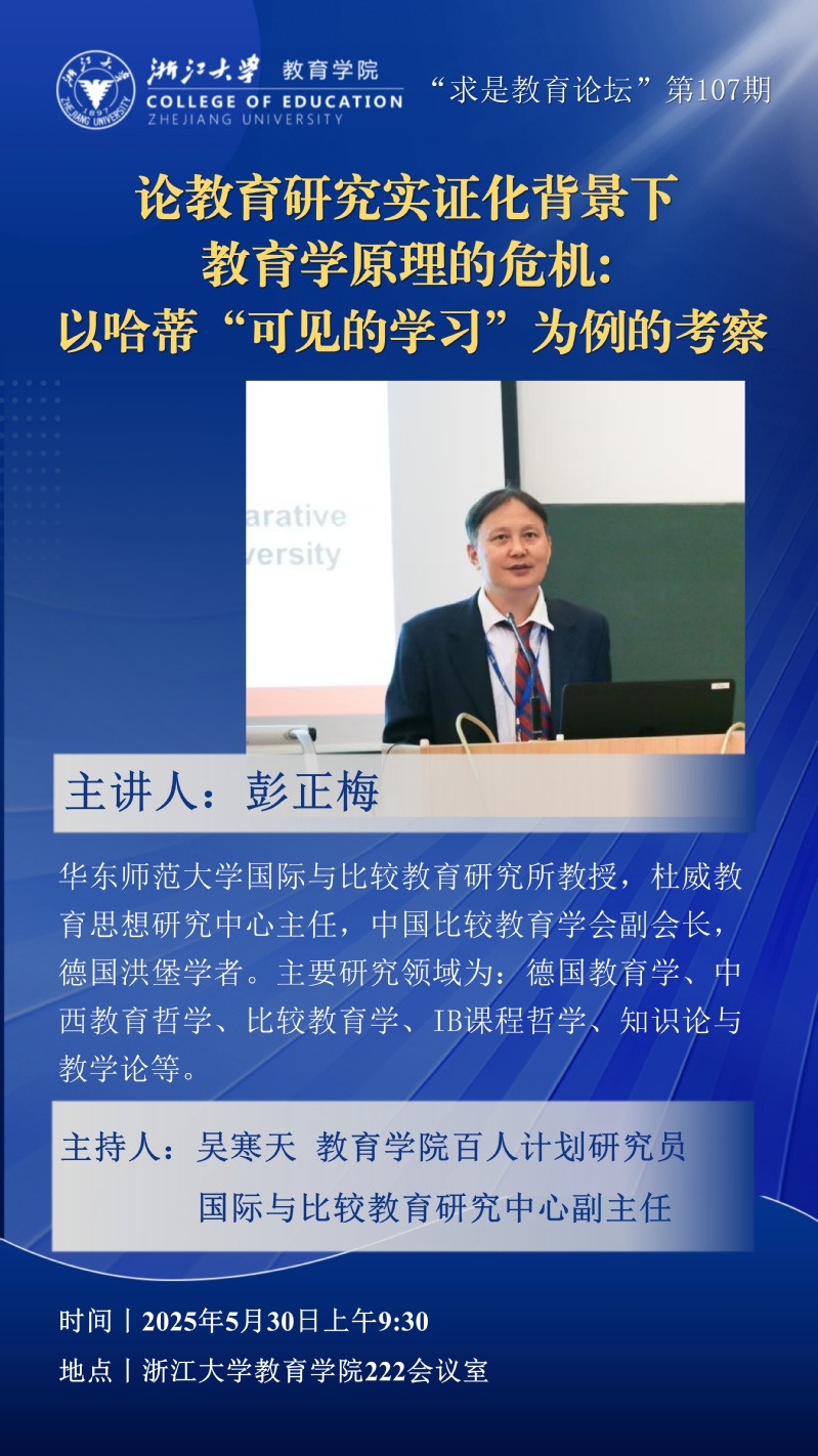 "求是教育论坛”第107期丨彭正梅:论教育研究实证化背景下教育学原理的危机: 以哈蒂“可见的学习”为例的