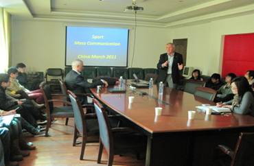 At 1:30 p.m., the two professors made presentations in the meeting room of Department of Physical Education on topics of MSc sport management and marketing, viral sponsorship, as well as exercise and diabetes. Undergraduate students of the major of sport management, as well as graduate students and doctors had attended the presentation. They all had benefited from the knowledgeable and interesting content from the professors.