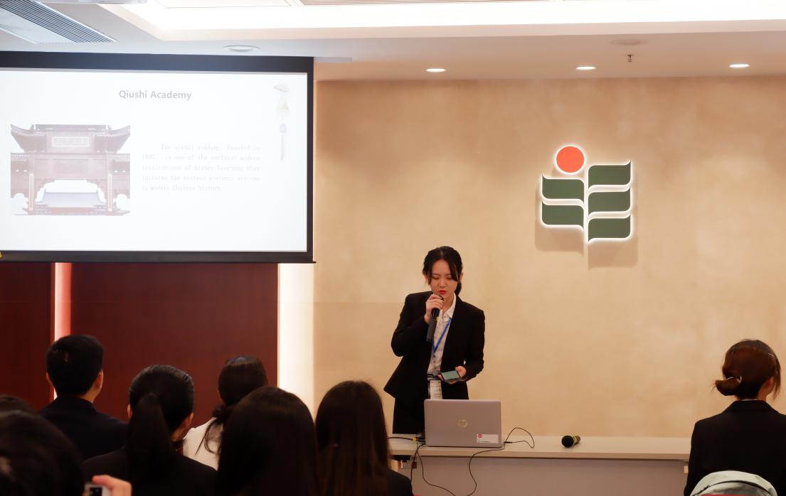 Then Shi Xinyue and Wang Lu who major in education introduced the history, campuses, academics, spiritual culture of Zhejiang University and College of Education.