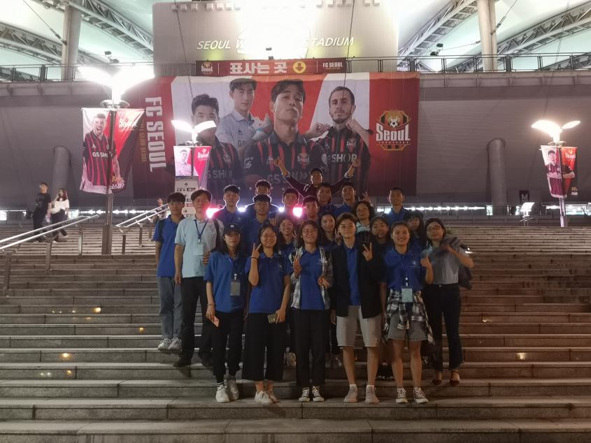 At 7 p.m., the delegation watched a professional football match between the All-North Team against Seoul Team at stadium. We could hear rhythmic music during the whole match. It is so excited to hear fans shouting and cheering loudly. We felt fully integrated into the competition and those Korean students showed the sports spirits and fans’ supporting culture to us. The football match has made a good start for the delegation’s visit to South Korea and we are looking forward to the schedule in following days.