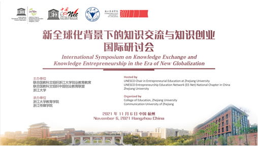 In early November, International Symposium on Knowledge Exchange and Knowledge Entrepreneurship in the Era of New Globalization was hosted by Zhejiang University. This symposium was jointly organized by College of Education of Zhejiang University, UNESCO Chair in Entrepreneurial Education at Zhejiang University, UNESCO Entrepreneurship Education Network (EE-Net) National Chapter in China, and Communication University of Zhejiang. More than 50 representatives from the United States, Britain, Italy, Australia, Finland, Singapore, South Korea, China and UNESCO attended the symposium, and more than 300 teachers, students and scholars attended online and offline.