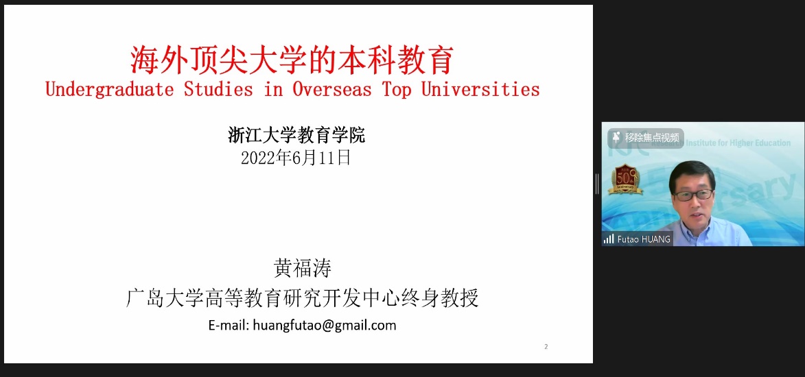 On June 11, Professor Huang Futao of Hiroshima University, Japan, launched into an academic discussion of “Undergraduate education at top overseas universities”. Professor Huang primarily differentiated the first university undergraduate education and the world-class university evaluation criteria, and then from comparative perspective, he demonstrated how to build first-class undergraduate universities, taking the United States and Europe as example. Then, respectively, Professor Huang listed Massachusetts Institute of Technology, University of Cambridge and other world-class university to do the case analysis, so the relevant characteristics of bachelor degree courses in research universities are obtained. In the end, Professor Huang talked about the trend of university curriculum pattern and the characteristics of undergraduate curriculum, as well as the relevant problems and enlightenments included.