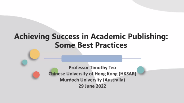 On June 29, Timothy Teo, professor at Chinese University of Hong Kong, delivered a lecture named “Achieving Success in Academic Publishing: Some Best Practices”. Prof. Teo is chief editor of two international journals, The Asia-Pacific Education Researcher (TAPER) and International Journal of Quantitative Research in Education (IJQRE), and a member of over 10 journal editorial boards. Based on existing research and work experience, his lecture mainly focused on what High Impact Journals are, why to publish in High Impact Journals, what High Impact Journals look for, implications for faculty and students and collaboration, etc.