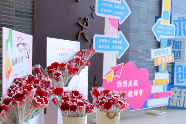 鲜花、合影、祝福……每一位老师踏入教院时都被面前的惊喜吸引。在阵阵欢声笑语中,老师们纷纷在打卡板前留下了自己的笑脸。