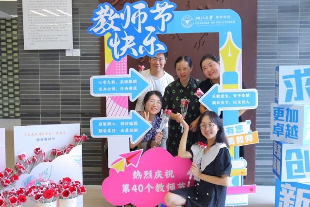 9月的紫金港,早桂尚未飘香,但师生之情已香飘满苑。一位位学子、一个个团队在打卡板前和老师留下合影,向老师诉说着感恩之情。