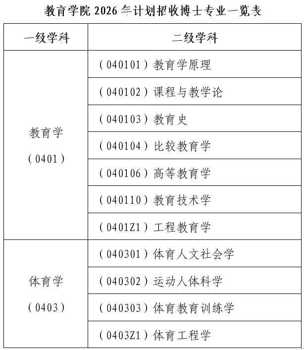 2026年做爱影片 计划在教育学和体育学两个一级学科下设的二级学科招收全日制学术学位博士生。